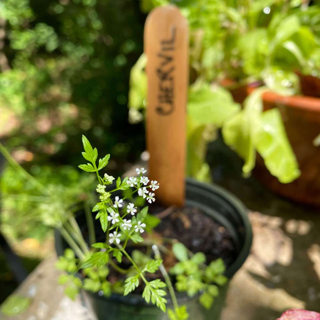 I was interested to see if these containers and bins made a difference in the overall vigor of the plants and also interested to see what challenges might affect the herbs in this new arrangement. Within a week, all the herbs had sprouted from seed. The chervil in the garden pot made it to flowering stage, but still remained much shorter than its traditionally intended size. The parsley filled out its pot. The trio in the raised bed grew quickly too. All three spread out and up but the chervil and dill remained short and low. The cilantro grew taller and fanned out beautifully, like a bouquet. None of the herbs in the pots or the raised bed were affected by pests.