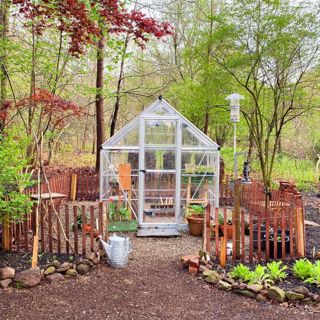 The foxglove seedlings in the back behind the greenhouse were squashed and trampled over by squirrels enroute to the birdfeeder and eventually were crushed to a papery pulp. The herbs on the right-hand side of the greenhouse (with lighter shade and much more sun-dappled conditions) fared far better but remained short and seedling size for months.