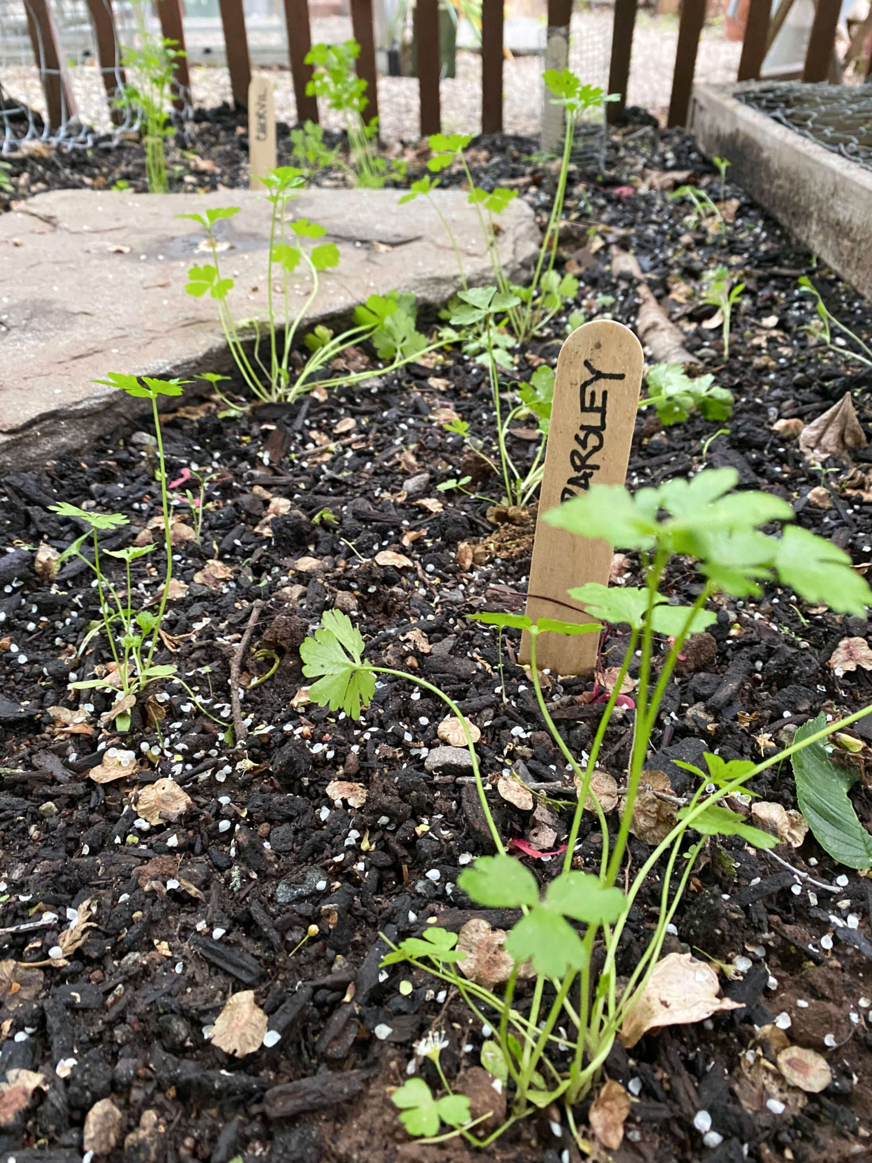 The final gardening trial in my experimental year involved starting four different types of herbs again in early September. This time, seeds were started in individual pots and in a raised bed, both placed in full sun locations in the back yard. I chose chervil, parsley, dill, and cilantro to experiment with since these are all cool weather lovers and since all four never made it to maturity in other in-ground areas of the garden. The chervil and parsley were planted separately in small pots, one plastic and one terracotta. The cilantro, dill, and a second batch of chervil were planted side by side in a raised bed that had previously been home to lettuce and mini melons, both of which thrived over the course of the summer.