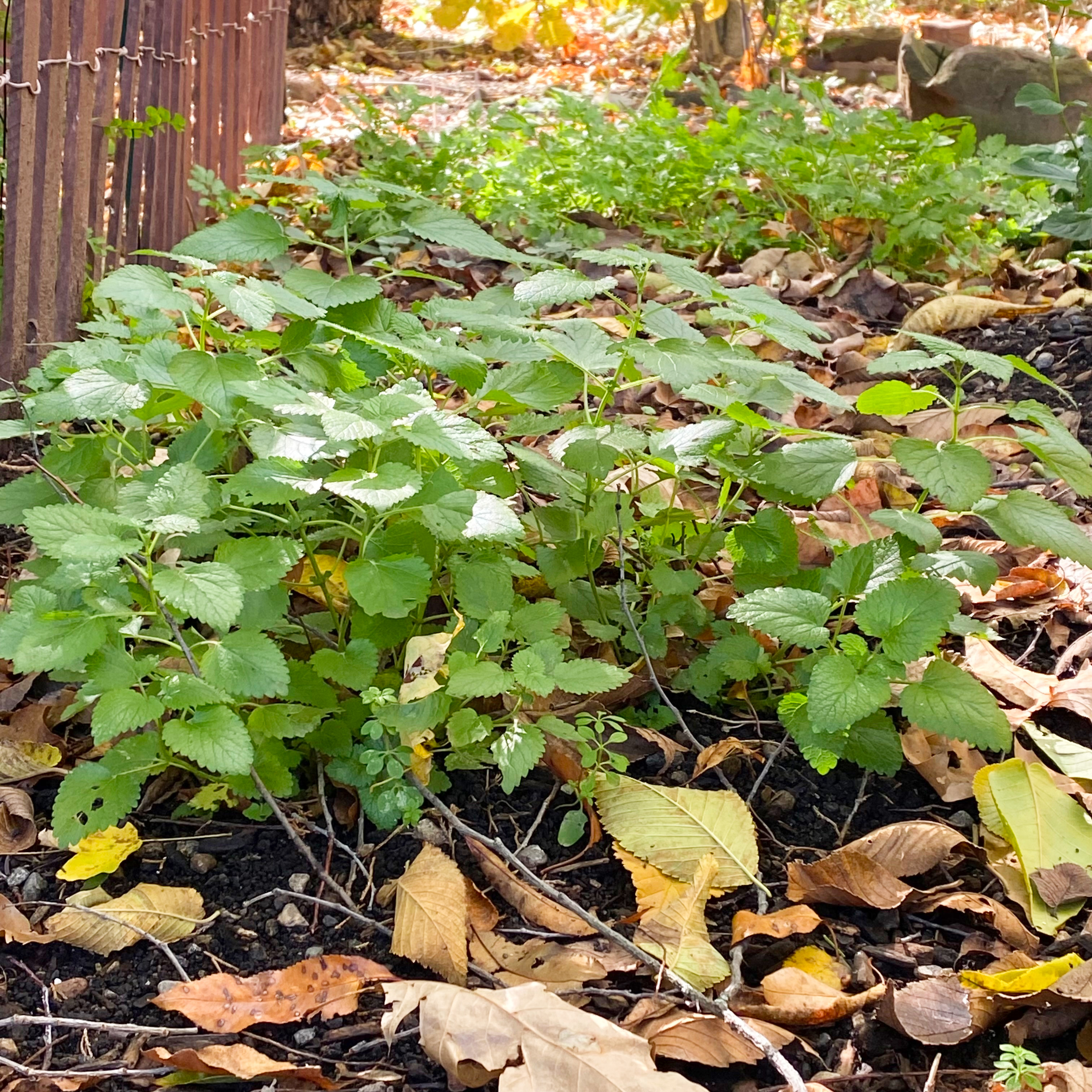 As of this first week in December… there are still green herbs in the garden: in every bed from the greenhouse to the front yard to the backyard. Already tucked in to their winter blankets (aka mounds of leaf mulch surrounding them but not covering them) they made it through their first snow/sleet/ice storm on Tuesday and look just as happy as they did on the days when the temperatures were 50 degrees and sunny. This makes me so hopeful that in starting an herb garden in 2025 with Adelma’s guidance, enough healthy groundwork has been laid for many of these herbs to overwinter and start anew again in 2026.