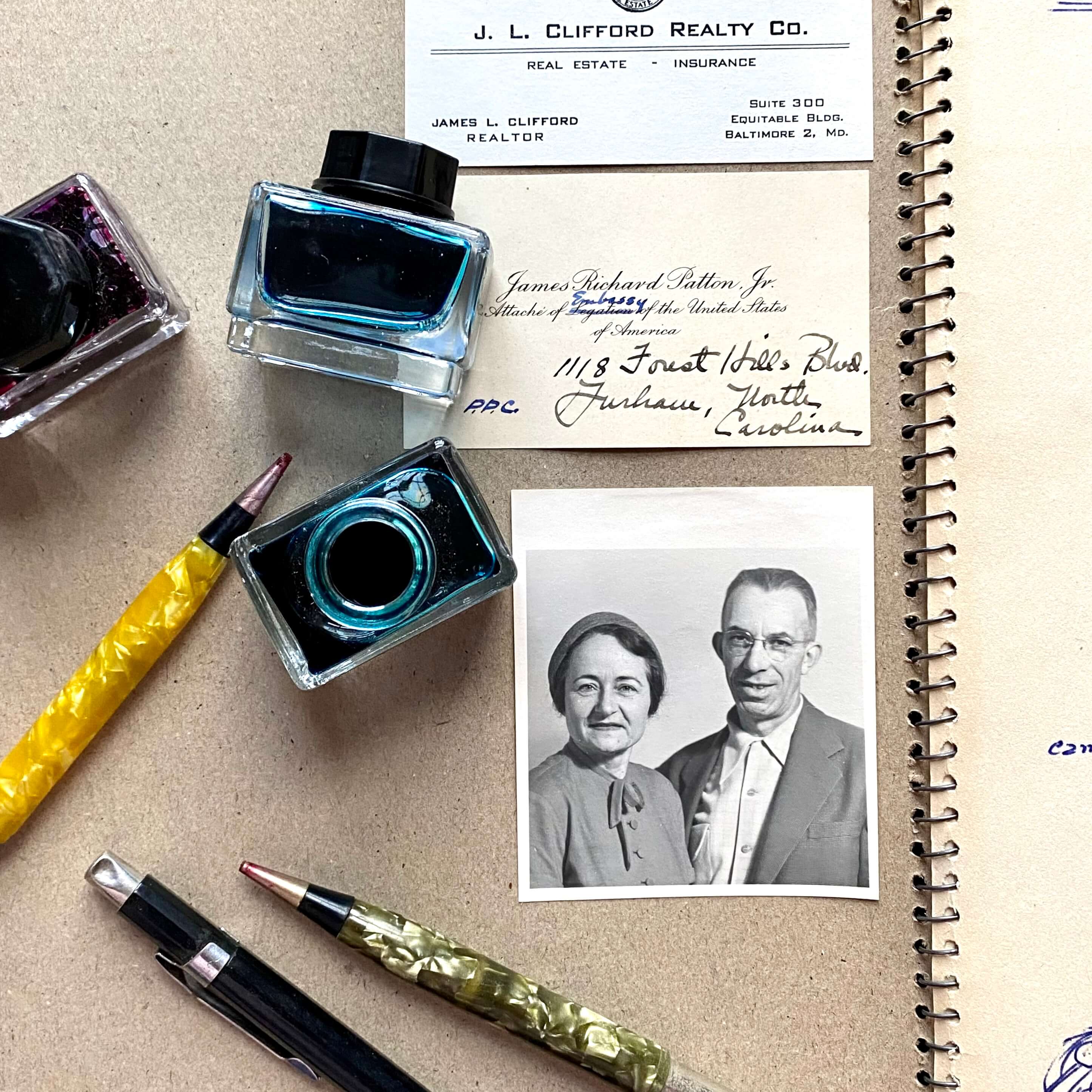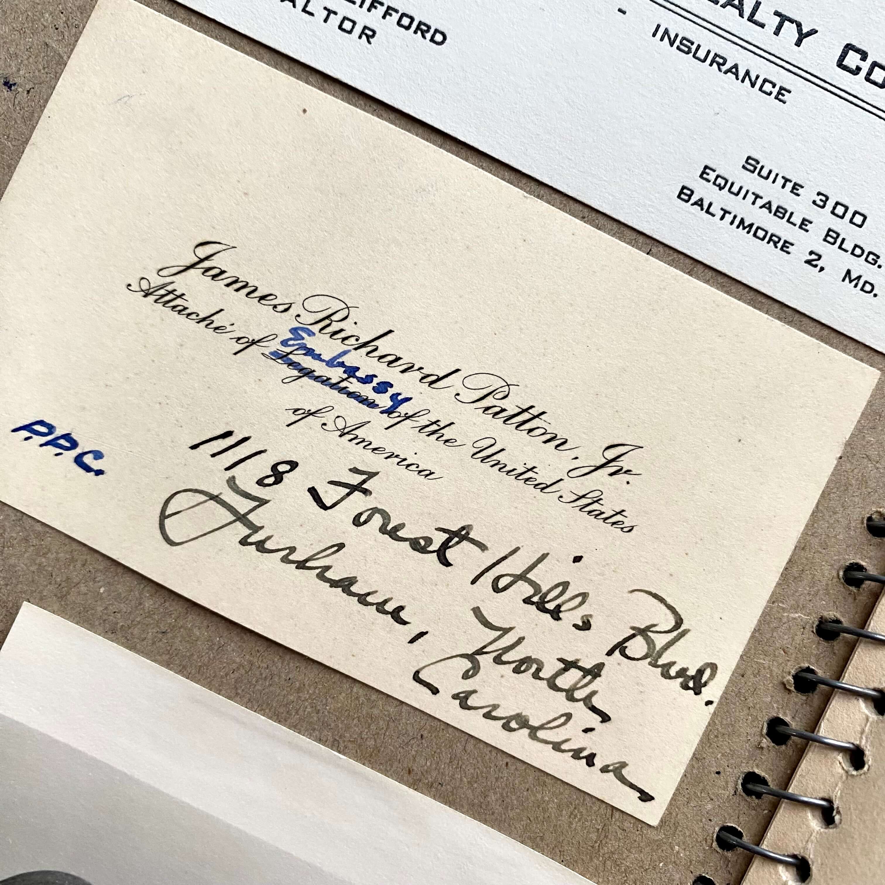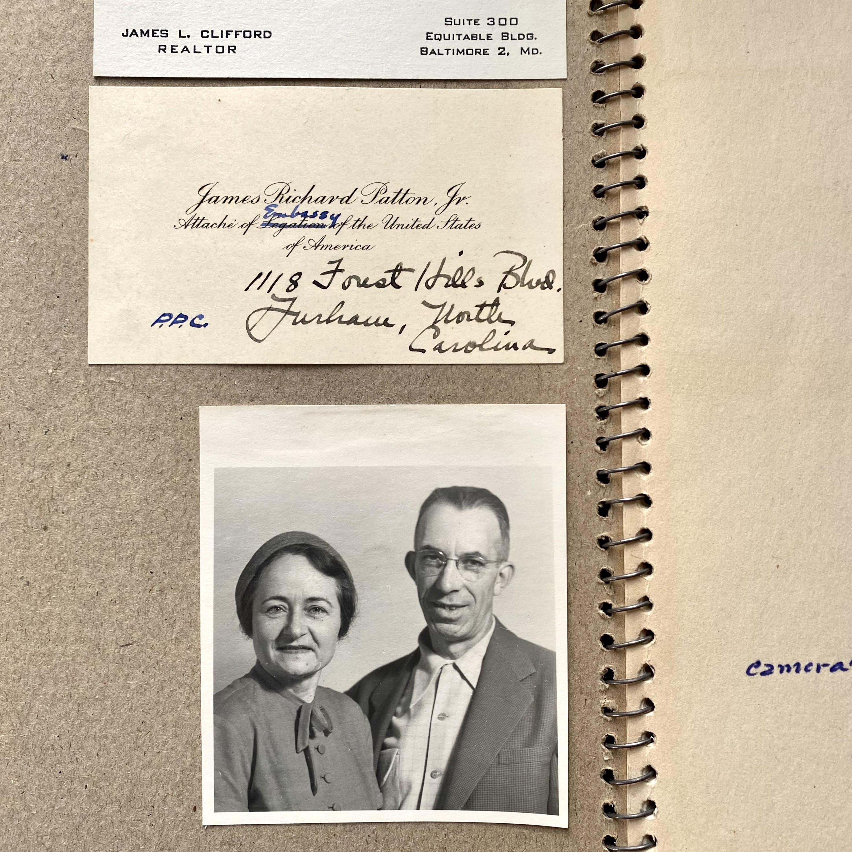 That these two smiling faces below the business card might have been diplomats or ambassadors on some sort of goodwill tour or perhaps building a cultural education program for the government. For a brief moment, I thought that perhaps Truman was the actual attache, James Richard Patton Jr, and that he had attached his business card in case he lost the notebook or left it behind somewhere along the journey.