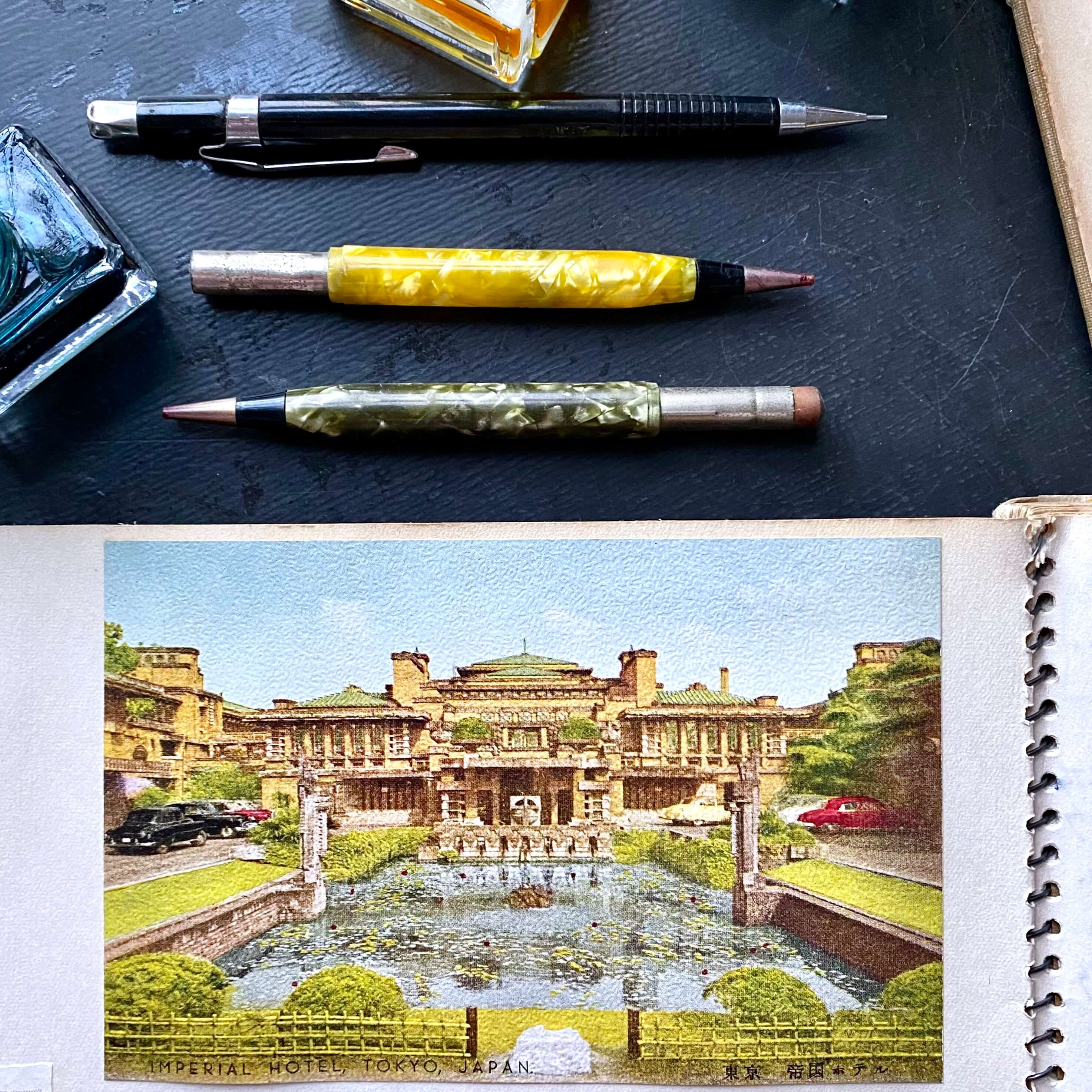 Truman didn’t record any impressions of the Imperial Hotel stay, but he did include a pale blue receipt and a linen postcard featuring its portrait. Built in the 1880s as a guest house for the government’s international travelers, this hotel, located in the Chiyoda ward of Tokyo, has long remained a bustling hospitality venue for the past 140 years.