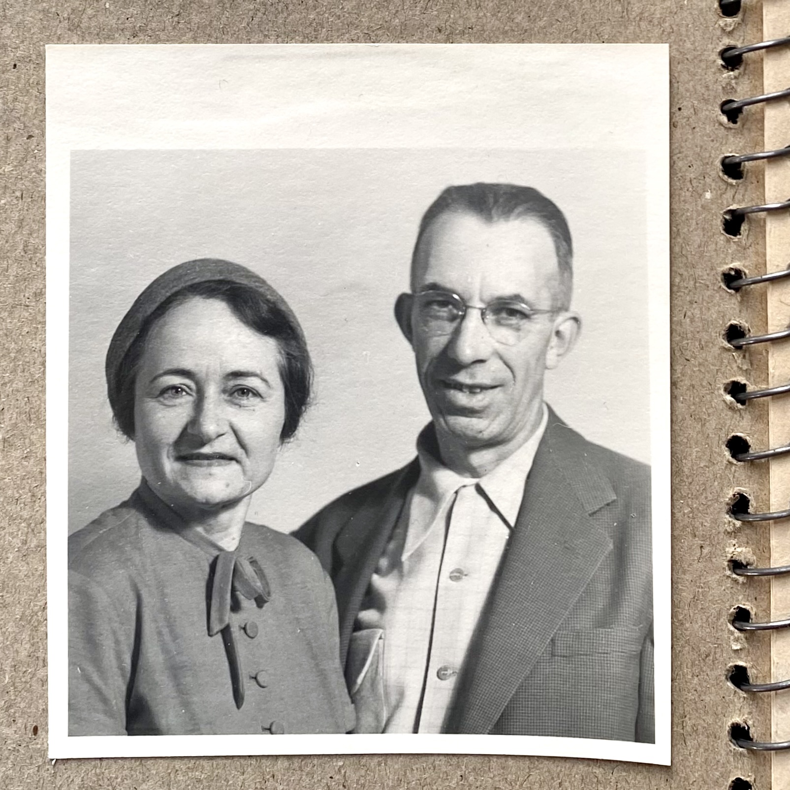 Candace didn’t know Truman or Millie either. She came to own their book via a box lot of Japanese sheet music that she had purchased from an Oregon antique auction in the late 1990s. The notebook, located at the very bottom of the box, was completely covered over by all the music and wasn’t discovered until she arrived home. When she opened the front cover, these two faces greeted her. Meet Truman and Millie.