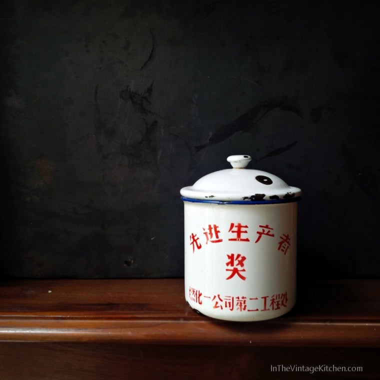 As for our little trophy of a Chinese mug – find her in the Vintage Kitchen shop here. Her exotic appeal and around-the-world scavenger hunt of a story make for a happy little storage system for tea or spices or kitchen items of all sorts.