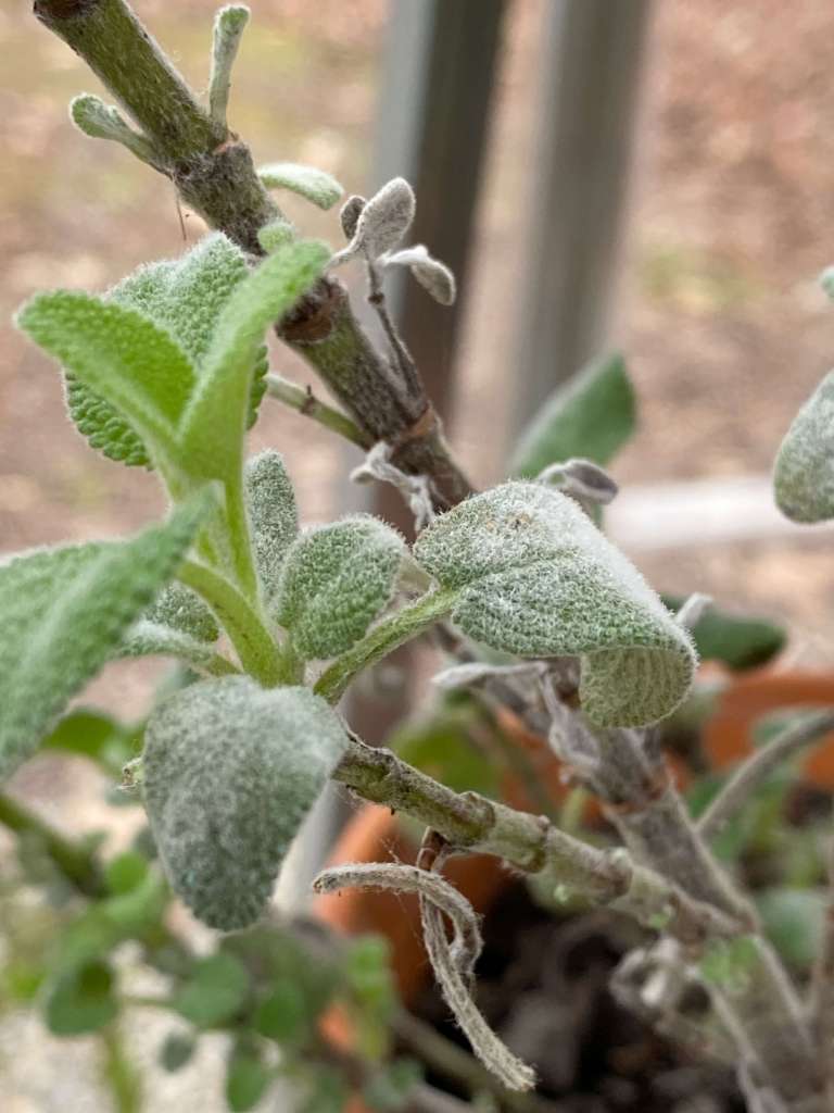 But for all this growth and joy and magic of this second week in December, there has been a challenge to contend with in the greenhouse too. The sage came down with it first. And then the tarragon. Powdery mildew.