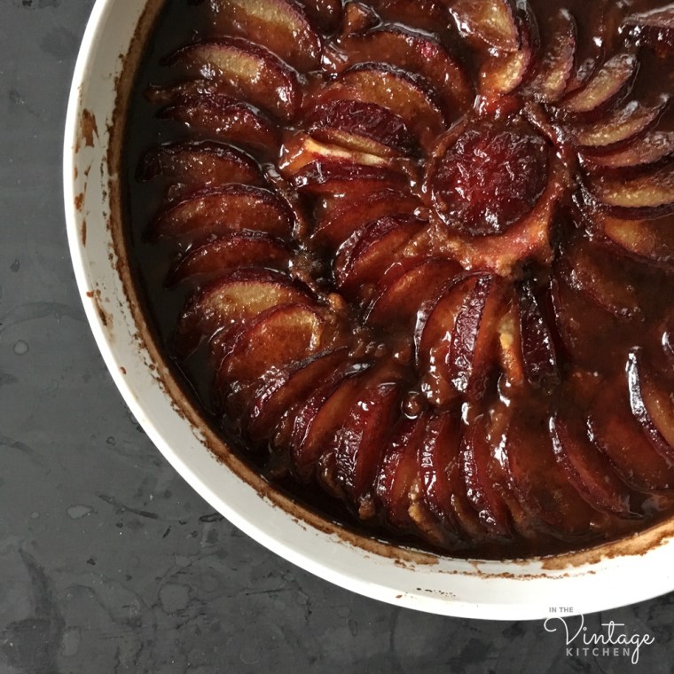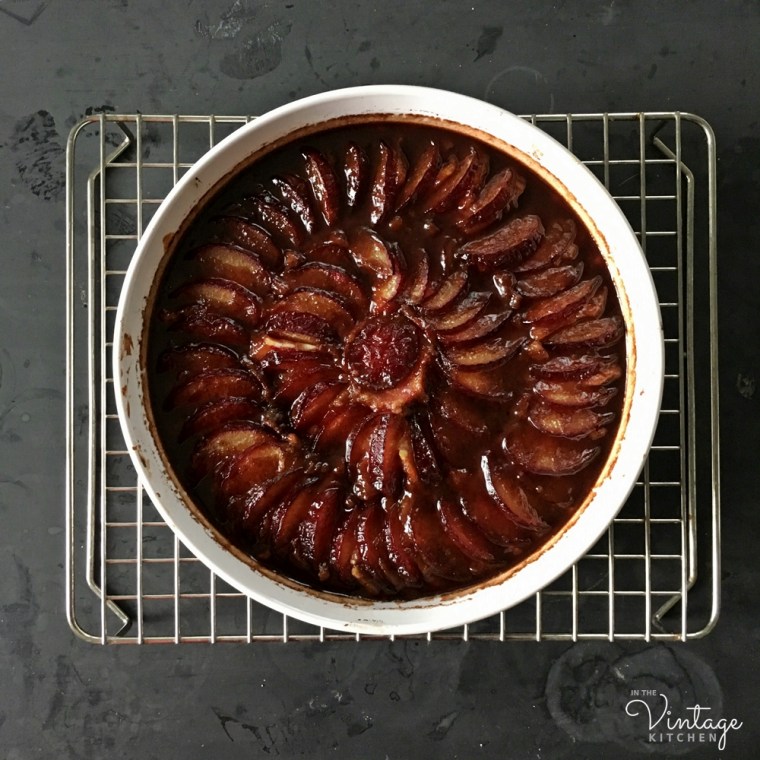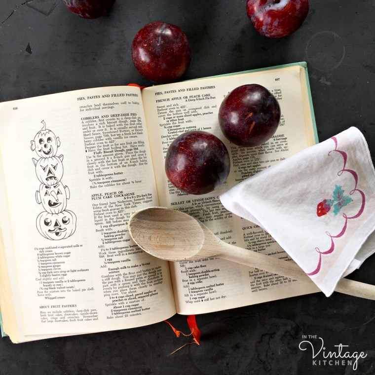 Over on Instagram the other day, I posted this photo above of the first Fall-themed dessert to come out of the Vintage Kitchen oven. It’s called Plum Cake Cockaigne and is from the 1964 edition of one of the most popular cookbooks in American history – Joy of Cooking by Irma Rombauer.