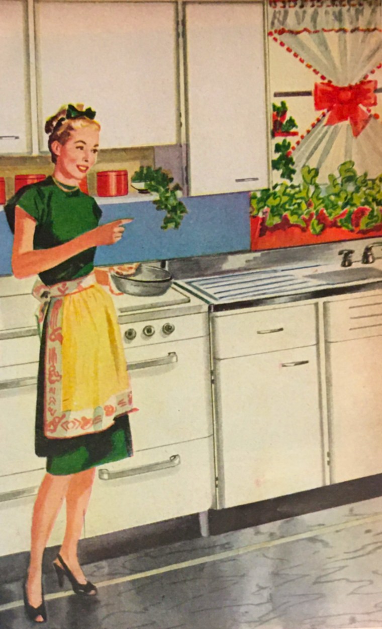 General Electric was a big national sponsor advertising all their latest products including wiring, appliances, air conditioning, and even electric blankets. Many of their innovations greatly affected the kitchen and laundry areas, turning those rooms into two of the most technologically advanced places in the entire house.