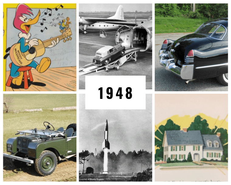 a romantic comedy starring Cary Grant, one of the most beloved actors of the twentieth century. But before we get into the story of searching for a nonexistent man in modern day, we must first travel back in time to the 1940s, an era when creativity flourished, outside-of-the-box thinking was encouraged and unusual situations were captivating the country. The first half of the decade was spent in World War II. On the home front that meant conservation, frugality, victory gardens, rations, fundraisers, and bond drives. It was a test in patience, positivity, confidence, and emotional endurance as people lived day to day waiting to hear the fates of their loved ones away at war. In those first five years of the 40’s people got used to making do, going without, and utilizing every last bit of everything. Thankfully, in 1945 the war ended and Americans adjusted once again to a new normal as they recovered from years of uncertainty. By 1948, two and half years after World War II ended, America was ready for some fresh air and some new perspectives. A glance at that year’s pop culture highlights speaks volumes about the country’s enthusiastic push for progress and for ideas that were new, and stimulating, and fun. Post-war, post-trauma, post post-sacrifice, 1948 embraced some big ideas that were remarkably different, refreshingly new and spectacularly exciting. Let’s look…