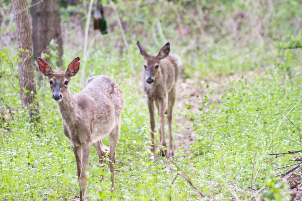 As it turns out, wholeheartedly yes. To say that the backyard bloomed with critters and creatures is an understatement. Our woodland deer sightings have tripled in size from two to seven. A pheasant, which in the past was just a one-day-a-year passer-through, spent days in early spring wandering the woods. Last month, a female turkey took up residence in the long grass near the bird feeder for a week. A pair of hawks has chosen a nest spot midway through the woods. Lefty and Lily set up home. And a veritable city of chipmunks and squirrels now keep the yard in a continuous state of rustle and bustle from treetop to underbrush, morning to night.
