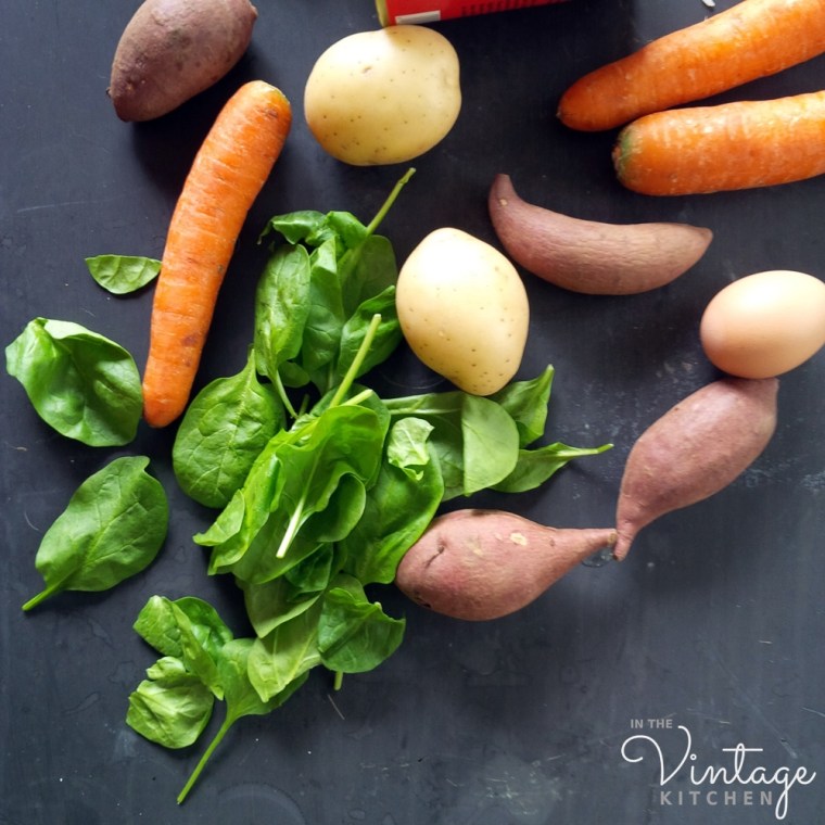 The part that takes the longest when in it comes to making homemade dog food is baking the potatoes (one hour in a 425-degree oven) and cooking the rice (15 minutes). While the potatoes are baking and the rice is cooking, we prepare the vegetables by chopping them into bite-sized pieces, and either sauteeing, boiling, or roasting them. We also use this time to boil the eggs, open the beans and/or cook the proteins as well.