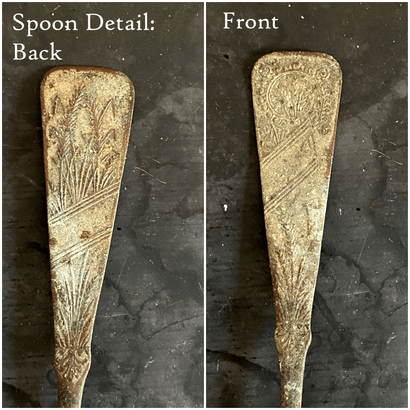 No easy teller of time and talent, it is, unfortunately, unmarked as to maker and manufacturer. After many hours pouring over antique silverplate patterns, I can’t seem to find any exact matches, but I suspect that it dates to somewhere around the late 1800s. It seems like quite a fancy spoon for a simple style house so it has piqued my interest as to who it belonged to and how it wound up stuffed inside the kitchen wall. I’ll keep researching it, but if any of you lovely readers recognize the pattern design please share your thoughts in the comment section.