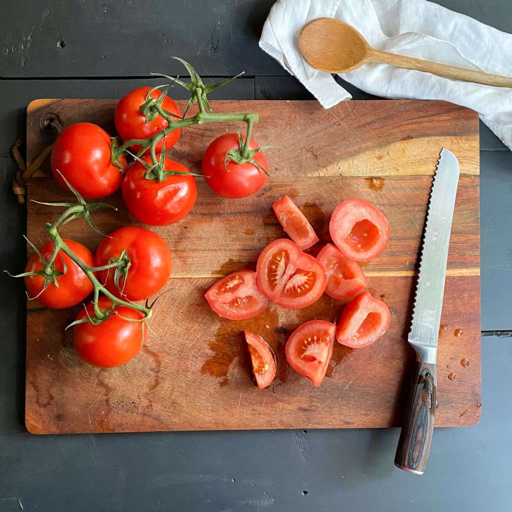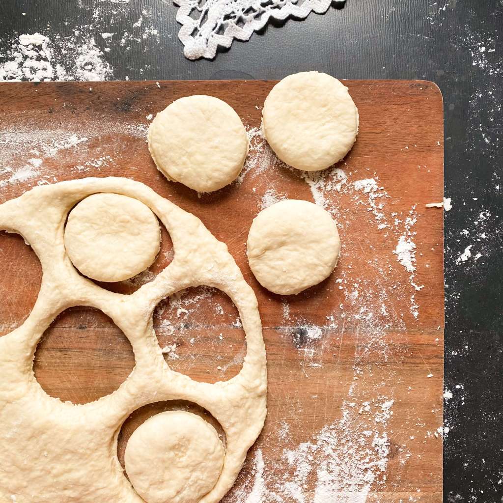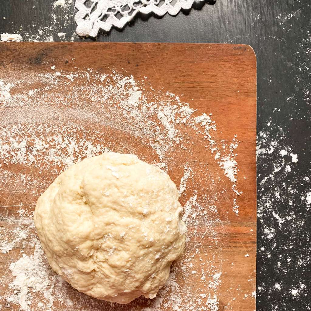 Shape the dough into a round ball and cut into two equal pieces. Shape each piece into a ball and let them rest for 5 minutes.
