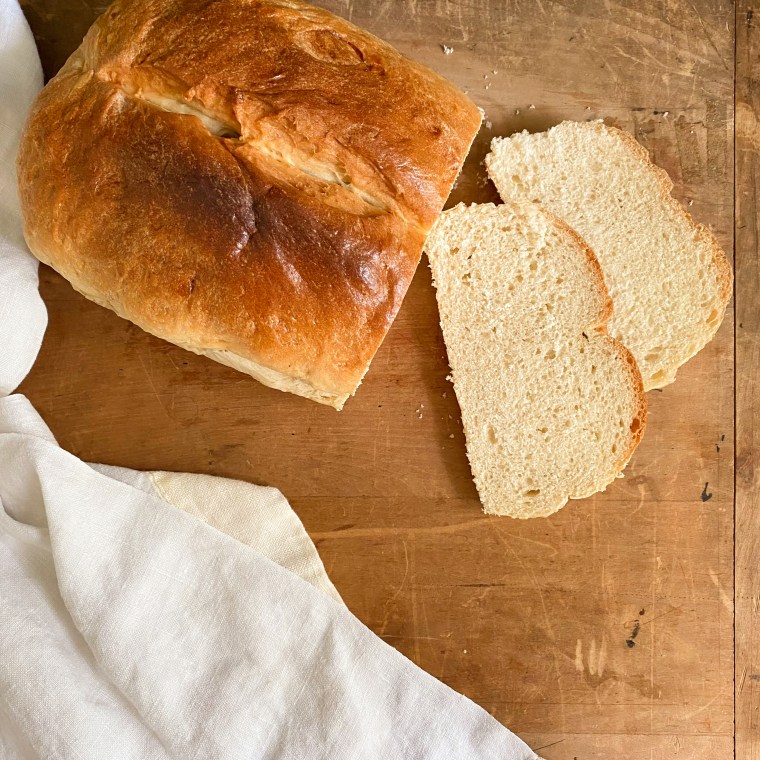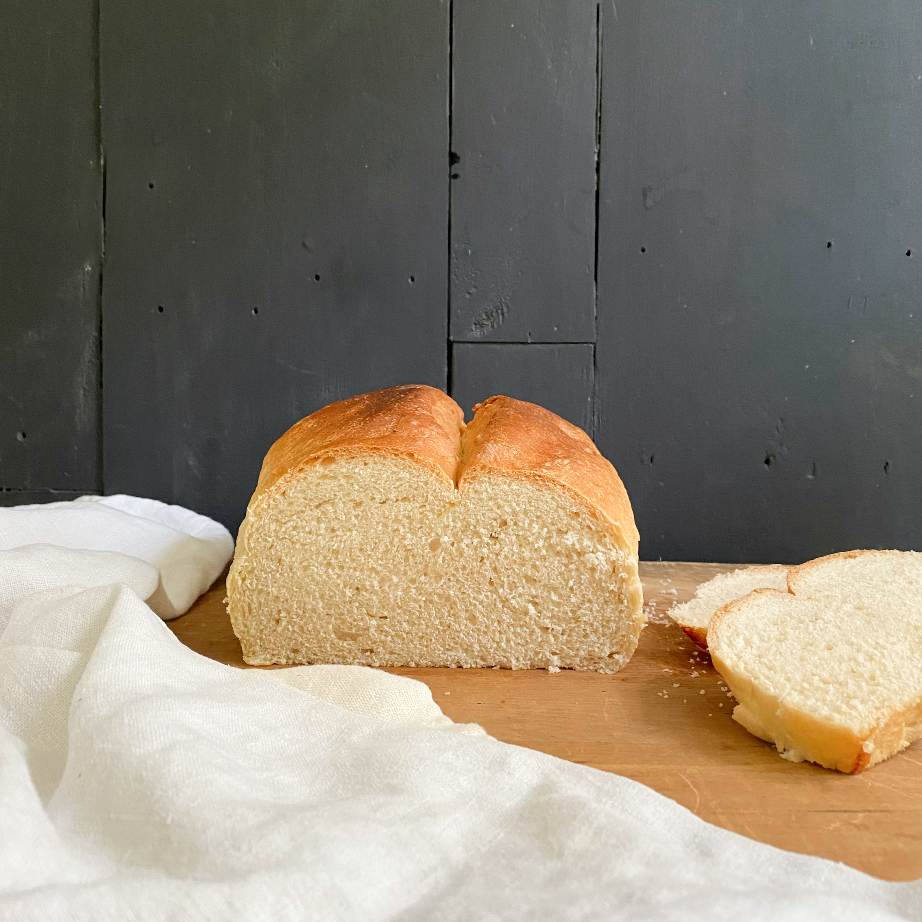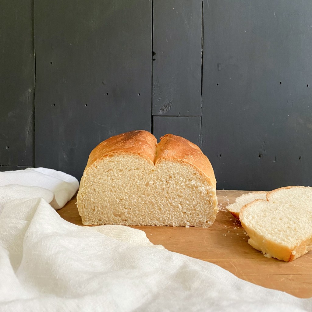 In case you have ever struggled, like me, with making homemade bread that winds up turning out flat, flavorless, or weighing twenty pounds, then this recipe will show you how to avoid all three. There’s a small amount of brown sugar that adds a hint of sweetness to the dough and also helps feed the yeast, but other than salt and butter, there are no other flavor enhancers. It produces two simple loaves that are ideal for sandwiches or toast with butter and jam. And it makes the type of bread meant to work in collaboration with other toppings, not compete with them. The loaves are of medium density with a light but substantial weight that makes you feel like you’ve eaten something nutritious, packed with good-for-you carbs and protein on a level that will sustain you for hours instead of just a few minutes. It’s not light and fluffy like a croissant nor is it hard and heavy like a peasant loaf. It’s somewhere in between. Spongey but firm with a texture that holds it shape and won’t fall apart when you cut it. I found it to be such a great, delicious, simple all-around bread. A best bread. Baked with kindness.