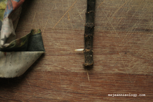 Do you see the little the root sprout jutting out there near the base?! A good sign that our fig clipping was getting a new start! Ms. Jeannie was so proud of little fig. She thought it might be best to wrap him back up into the Ziploc for another week or two to see if he could grow some more shoots. After that he was going to be transplanted to a plastic cup filled with vermiculite, as recommended by the NewEnglandGardener.
