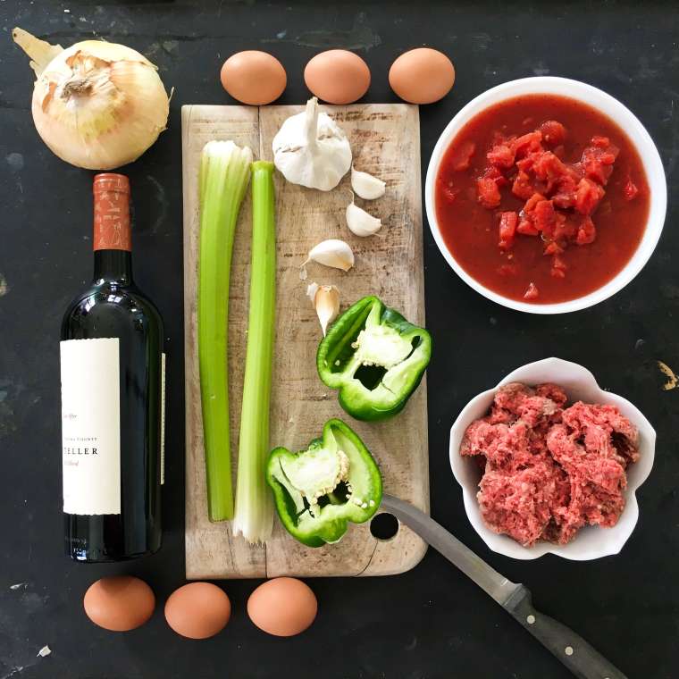 Tonight we’ll dive right into the recipe so that we can talk about the unique aspects and attributes of it after all the steps are laid out. A super easy recipe to make (a nice reprieve after the confusing fondue affair of last week!) Picadinho a Brasileira is a one pot dish that slow simmers on the stove for almost two hours. It includes half a bottle of wine, a satisfying amount of vegetable chopping and six eggs (something that originally sounded a bit unusual). It’s also low-maintenance thanks to the slow cooking so it conveniently allows time for you to do other stuff while its simmering away. Maybe that’s where you can fit some extra time for romance:)