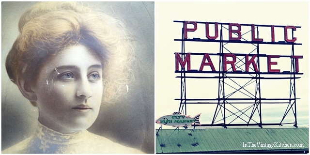 Taken around 1900, this was a great new addition to the family photo collection. We don’t have any pictures of Mabel’s seven sisters taken while they were young. Katie has no connection to Seattle or to the market that I know of yet but it was encouraging, a good luck sign, perhaps to see the sisterly face of someone who was so important and so close to Mabel.
